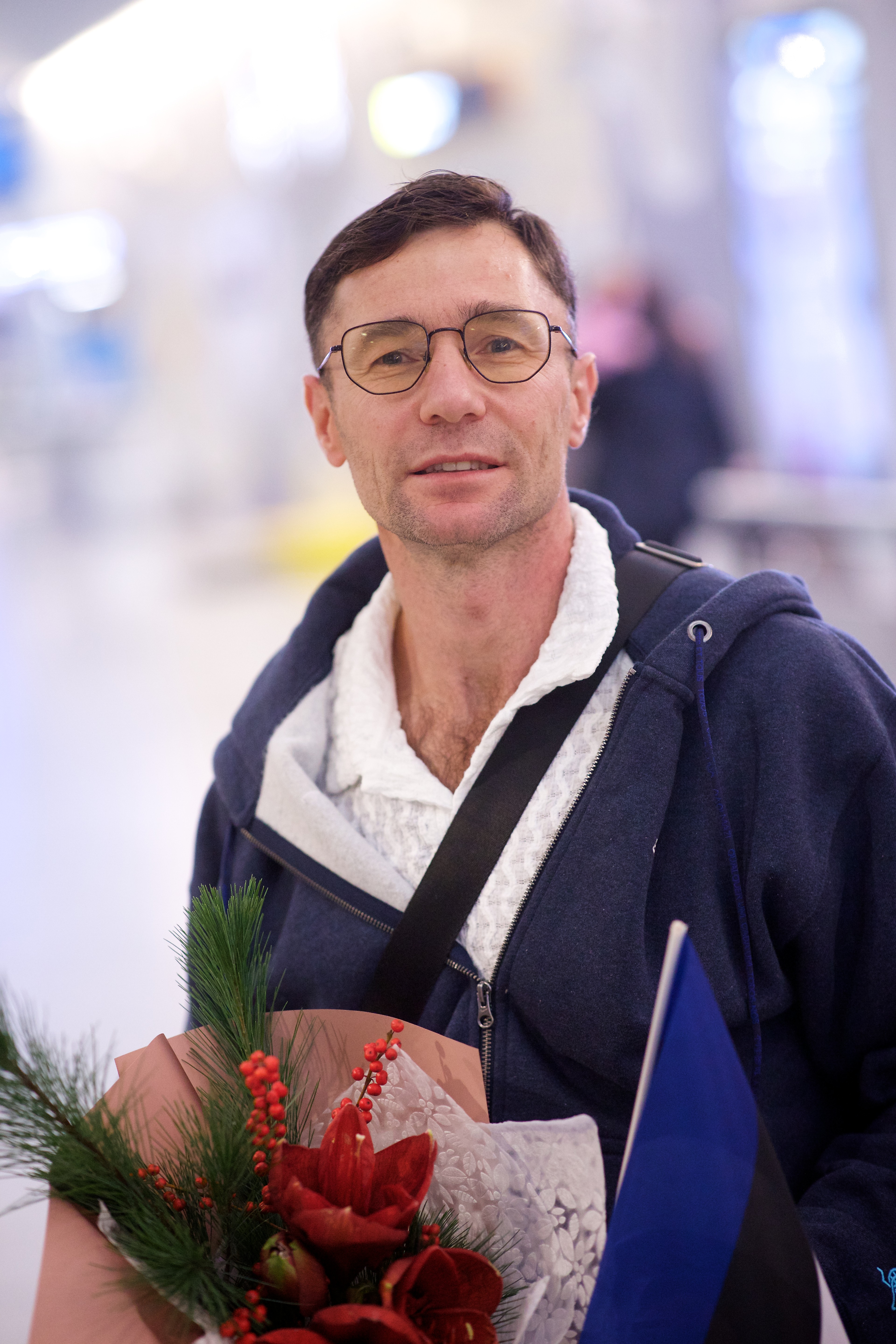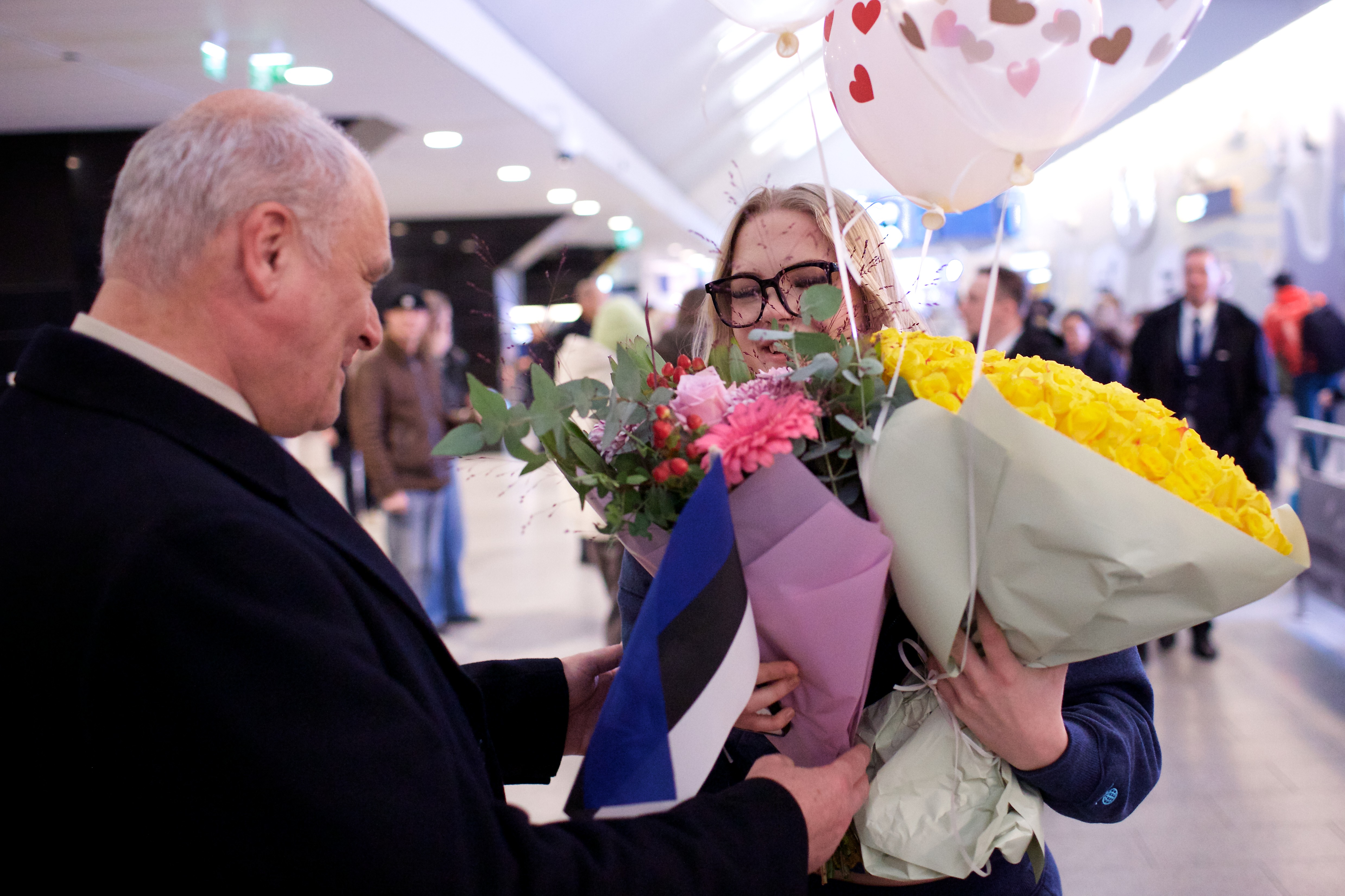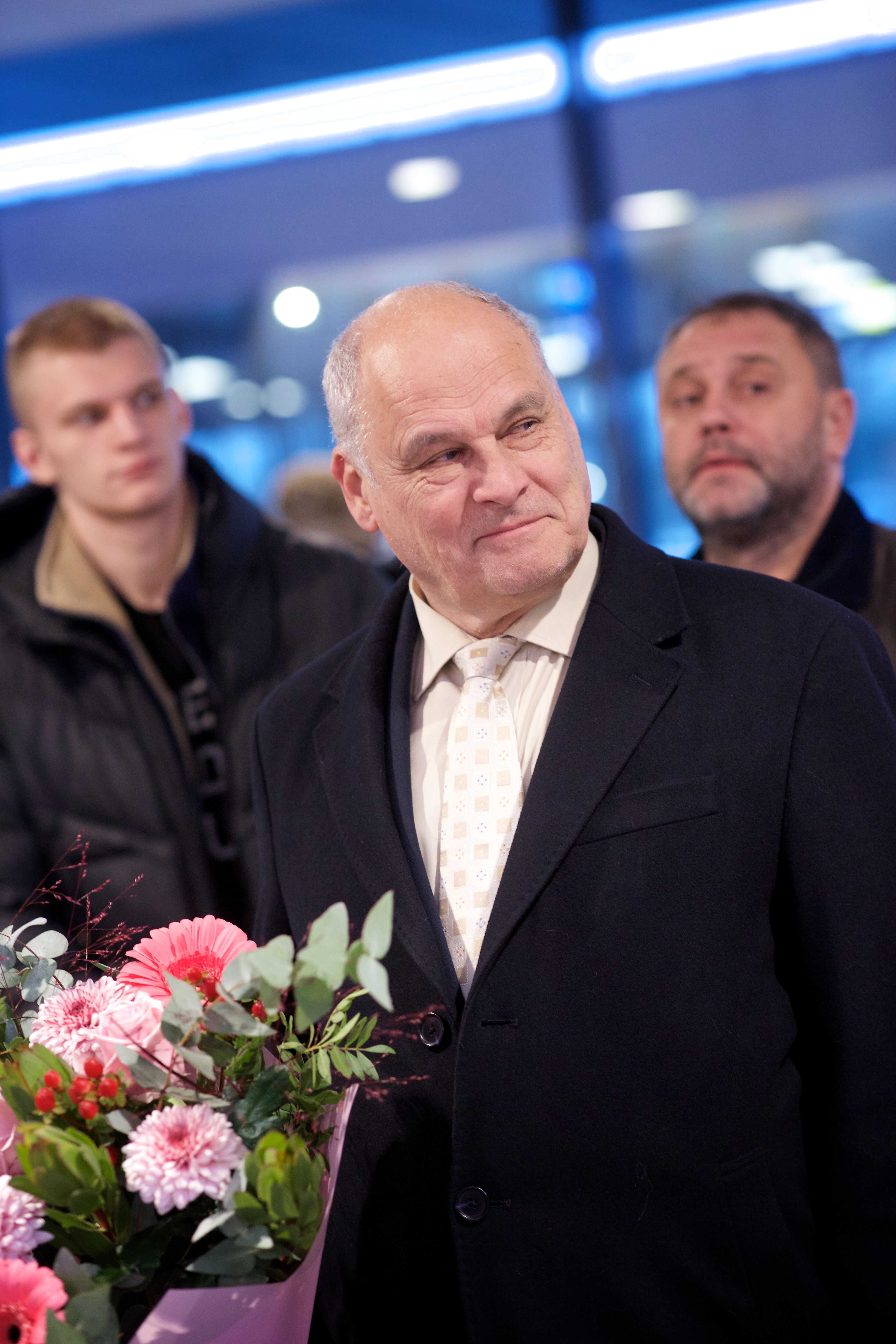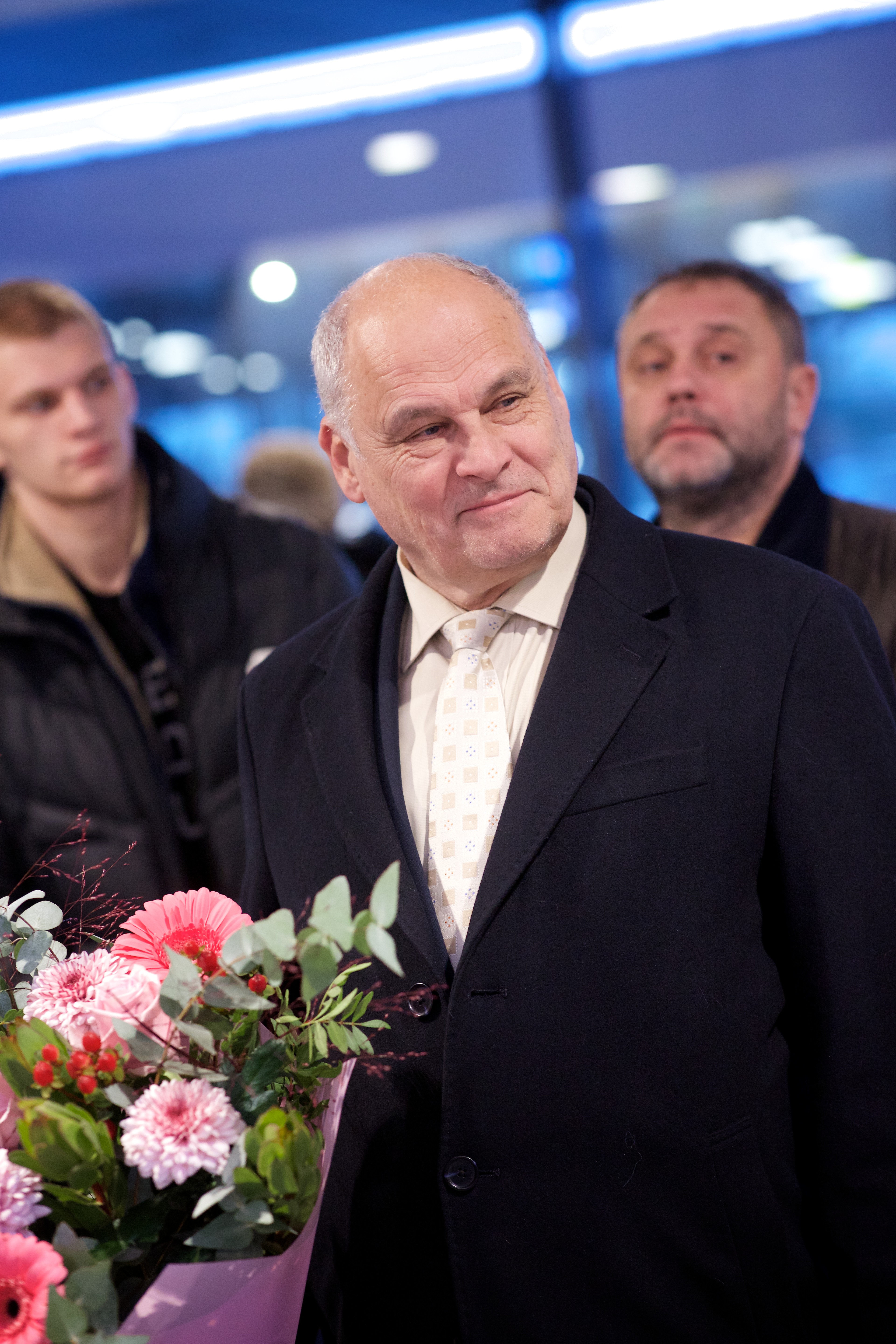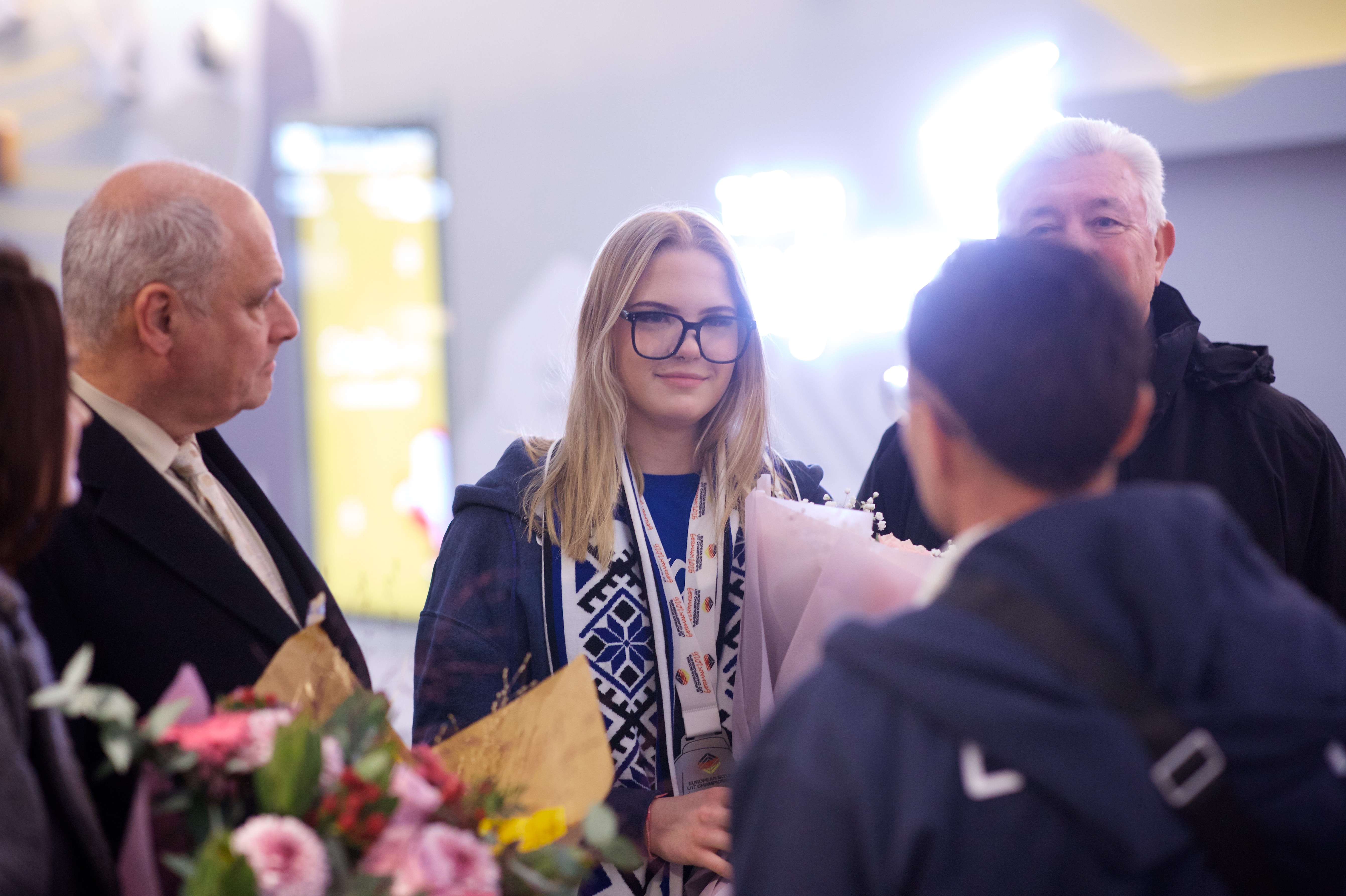 Pilte Melana Nelgi ja tema treeneri Jevgeni Golovatši vastuvõtust Lennart Meri lennujaamas.