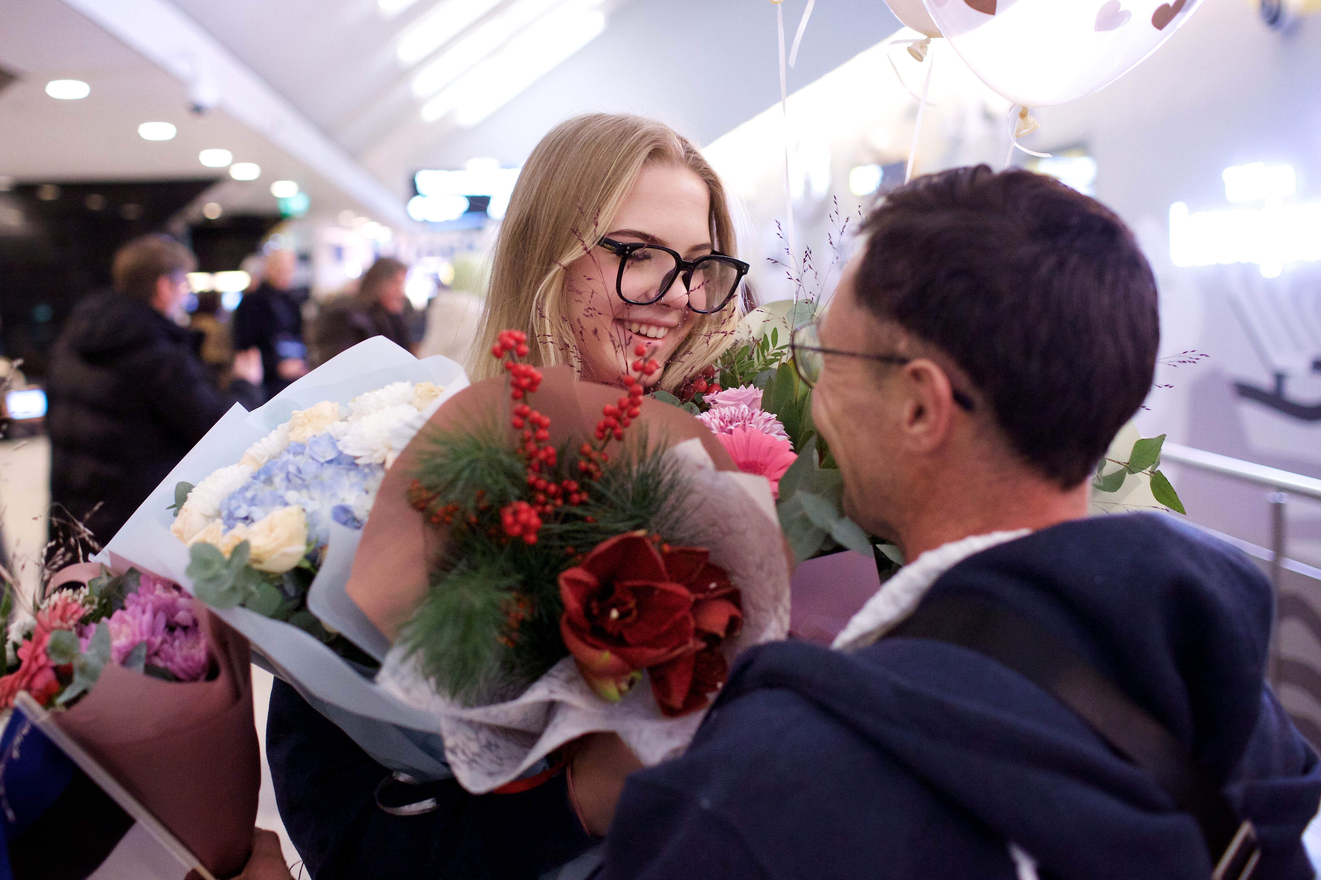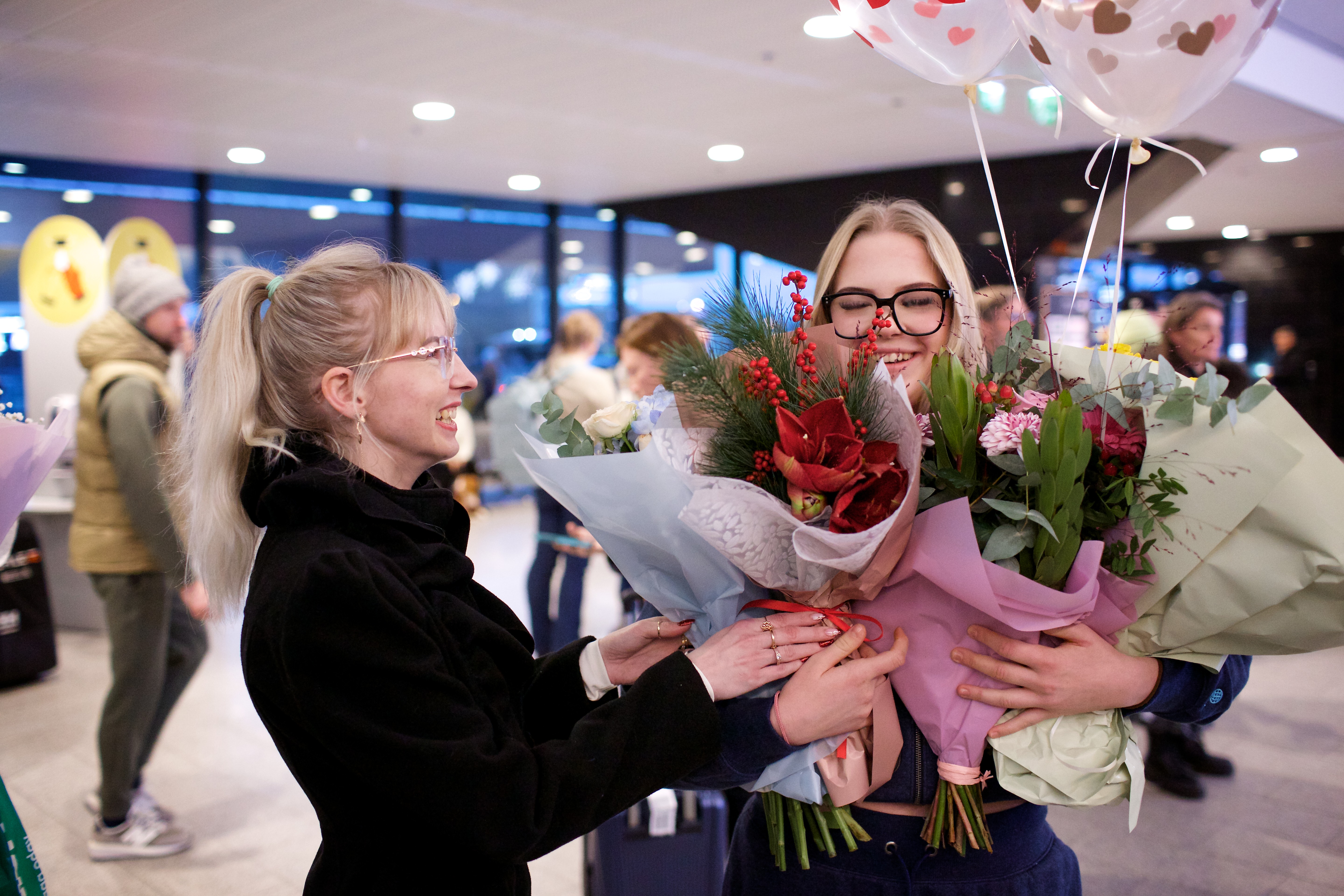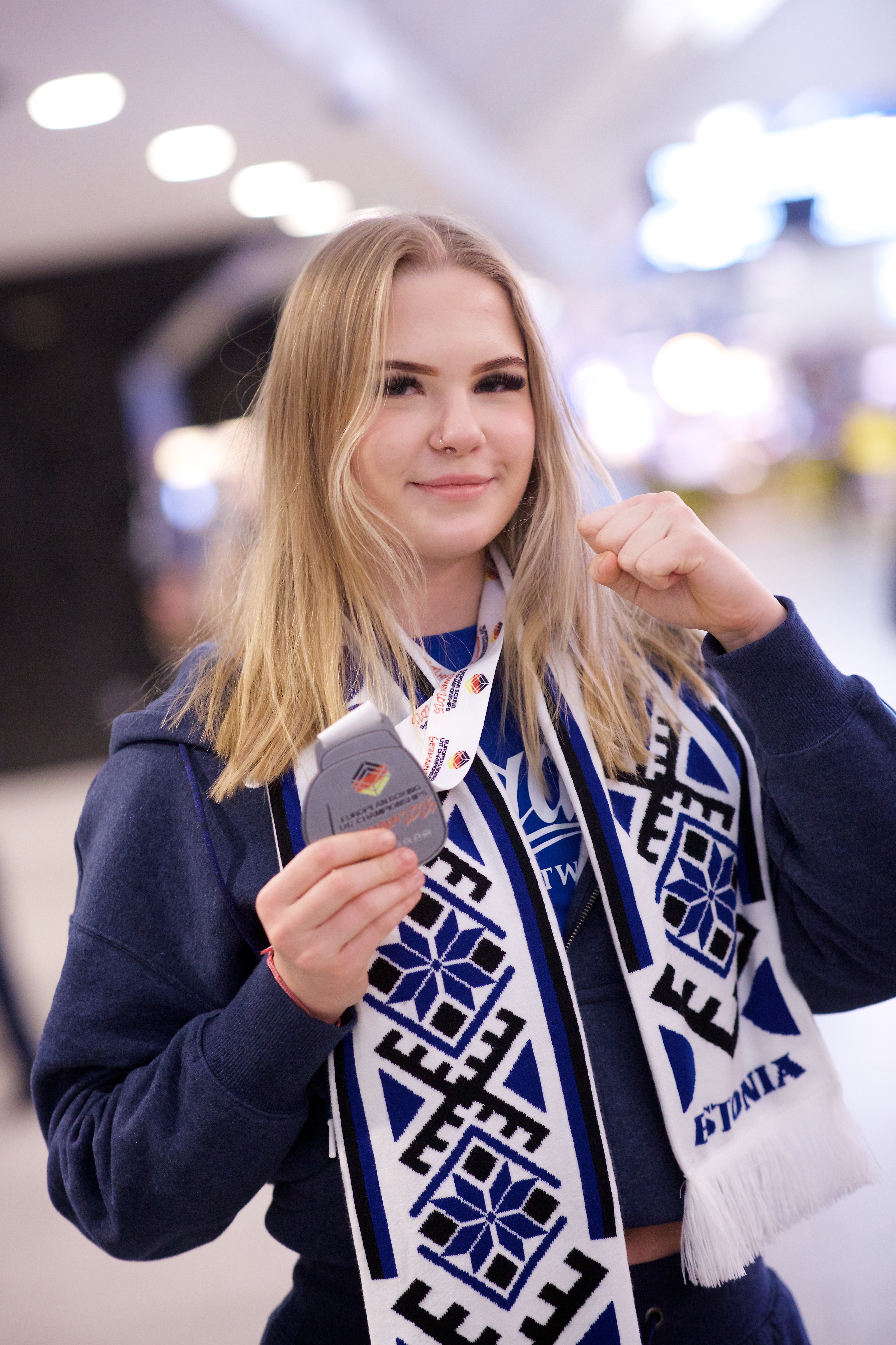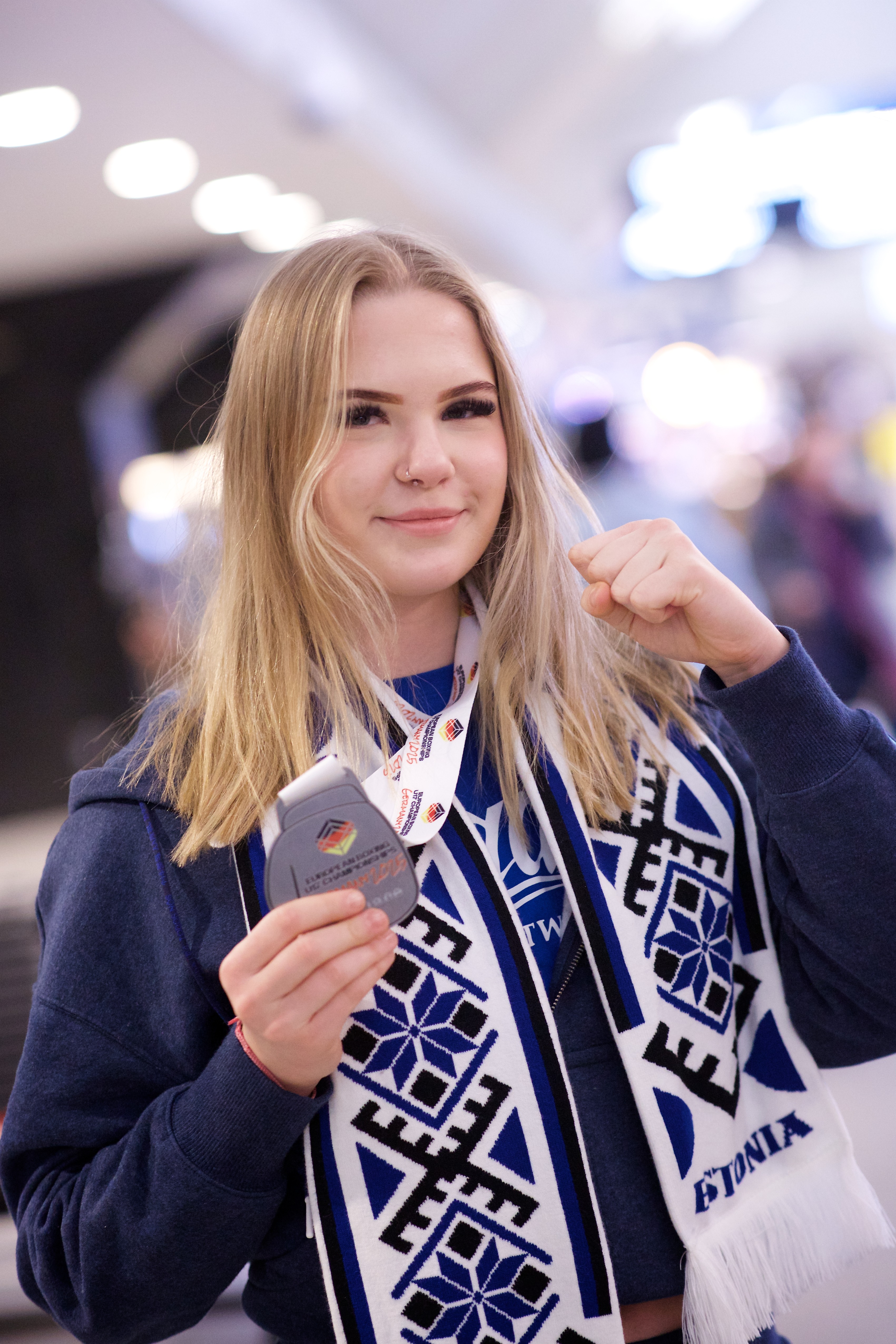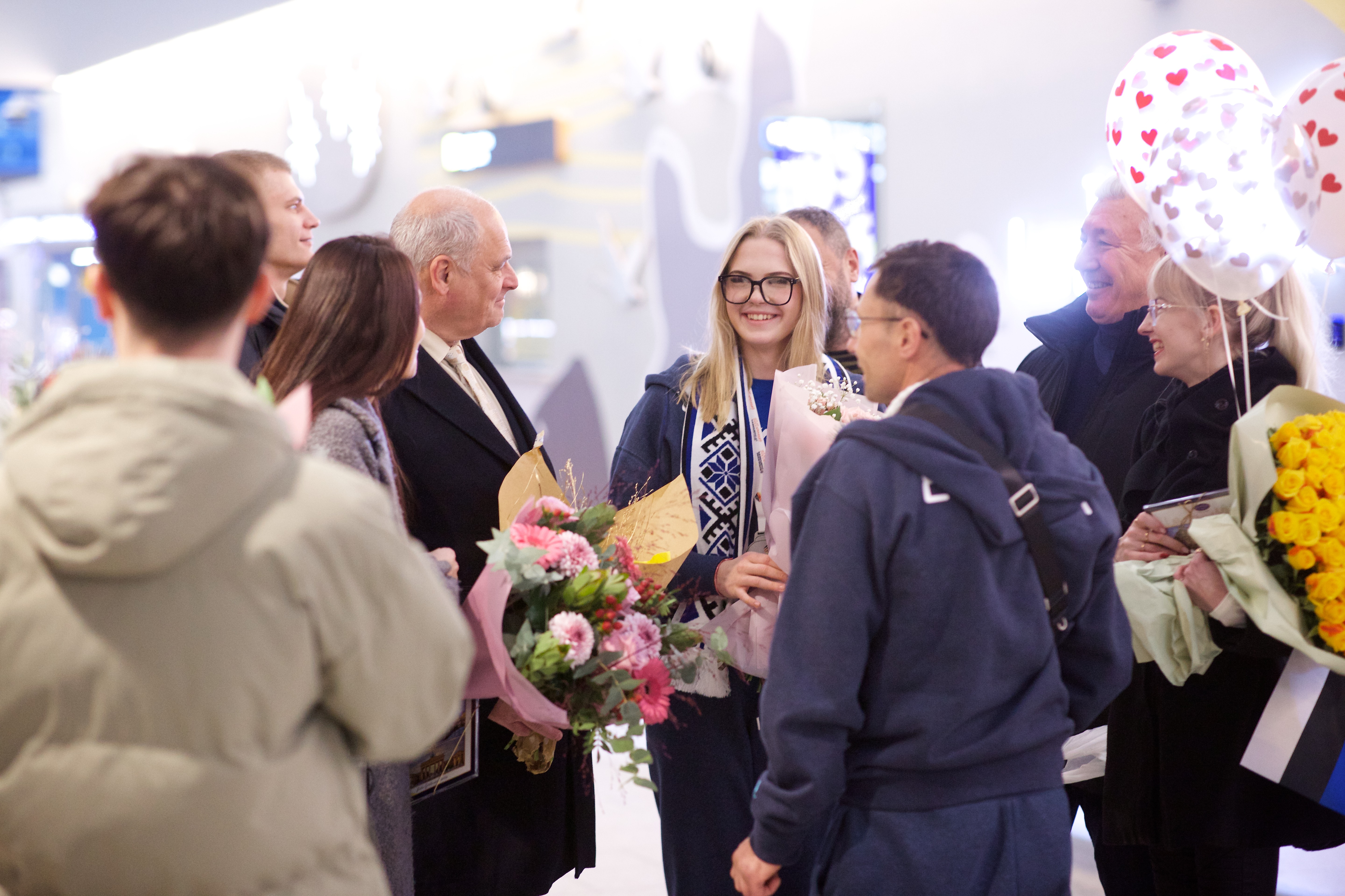 Pilte Melana Nelgi ja tema treeneri Jevgeni Golovatši vastuvõtust Lennart Meri lennujaamas.