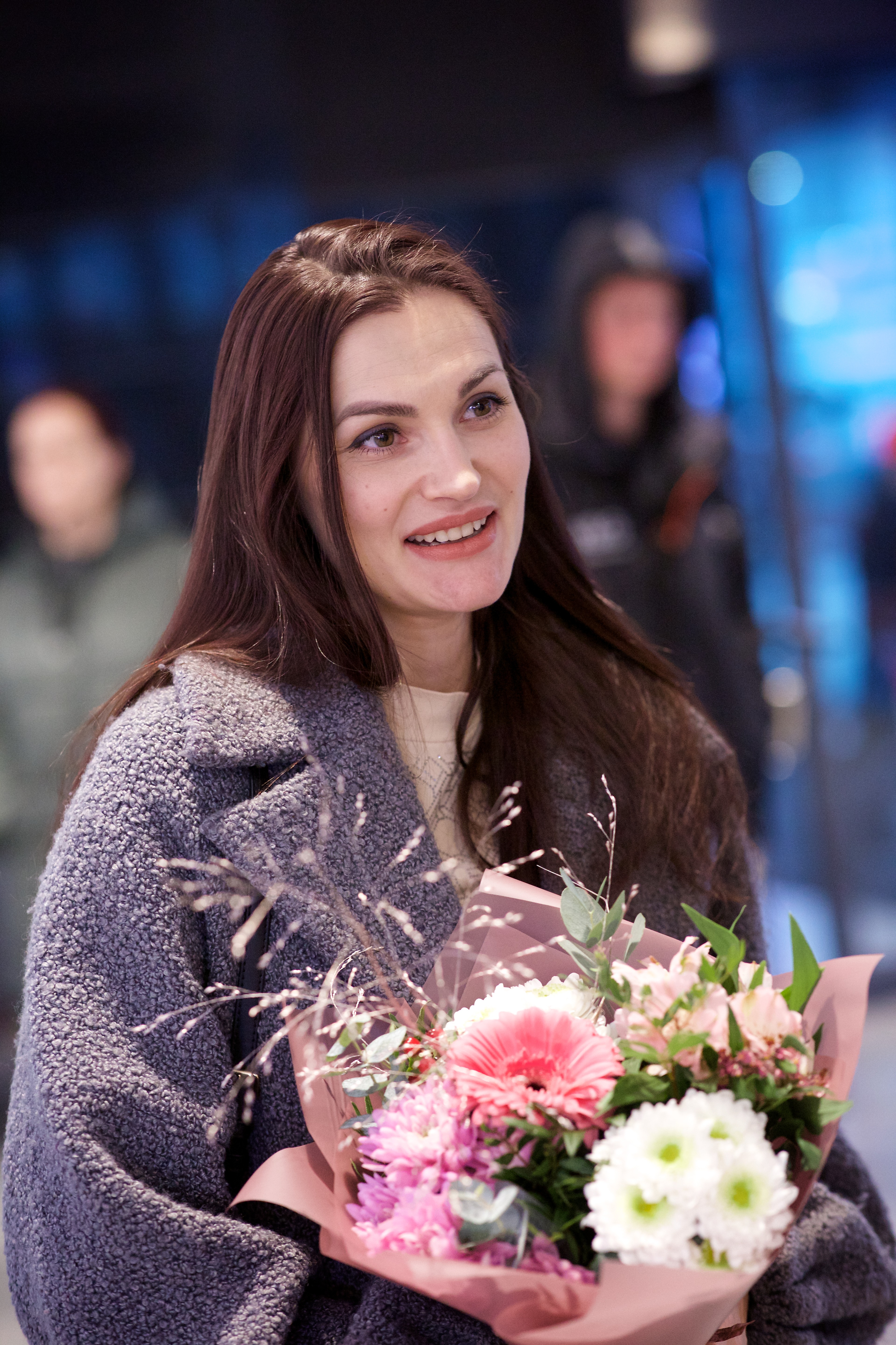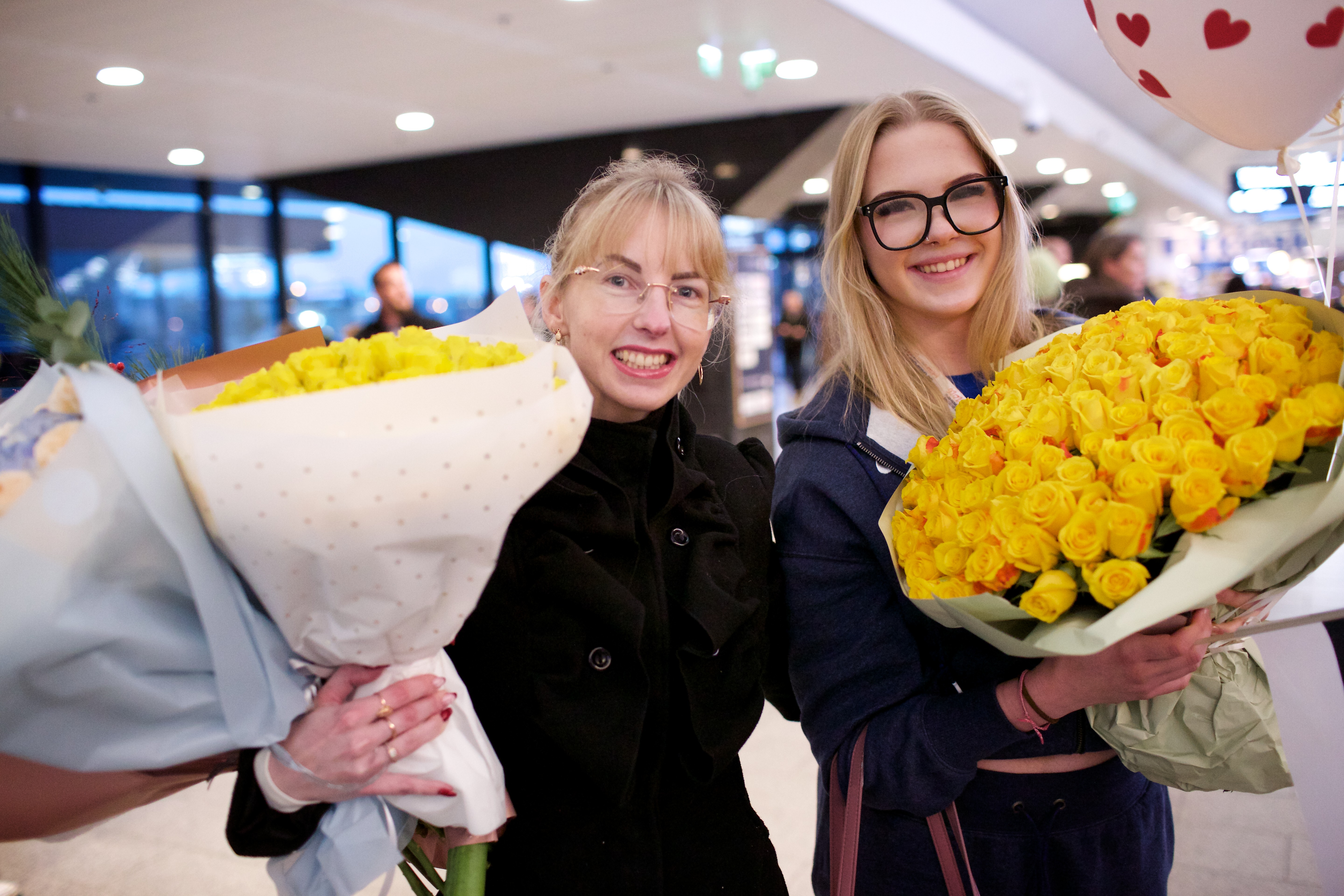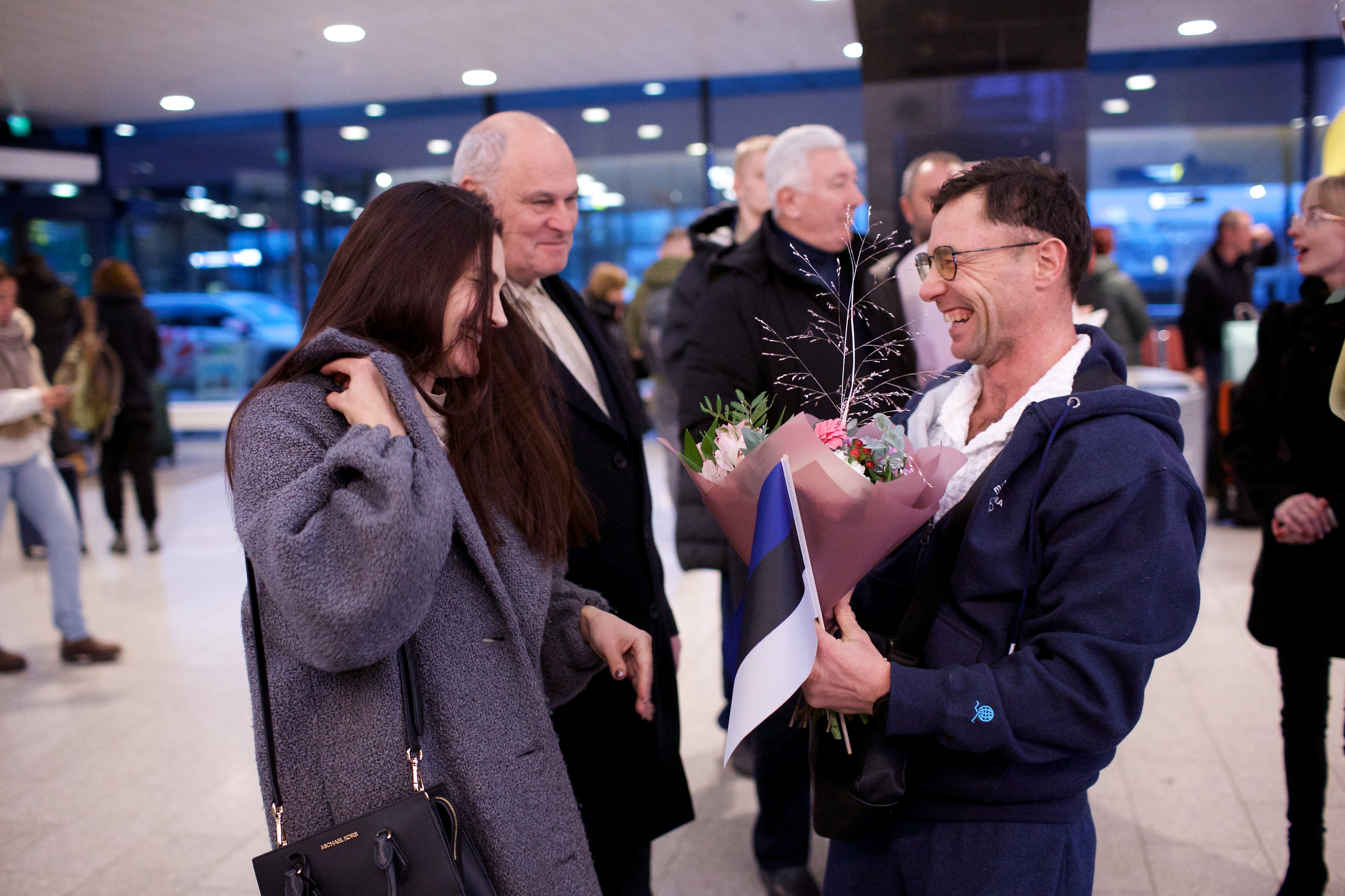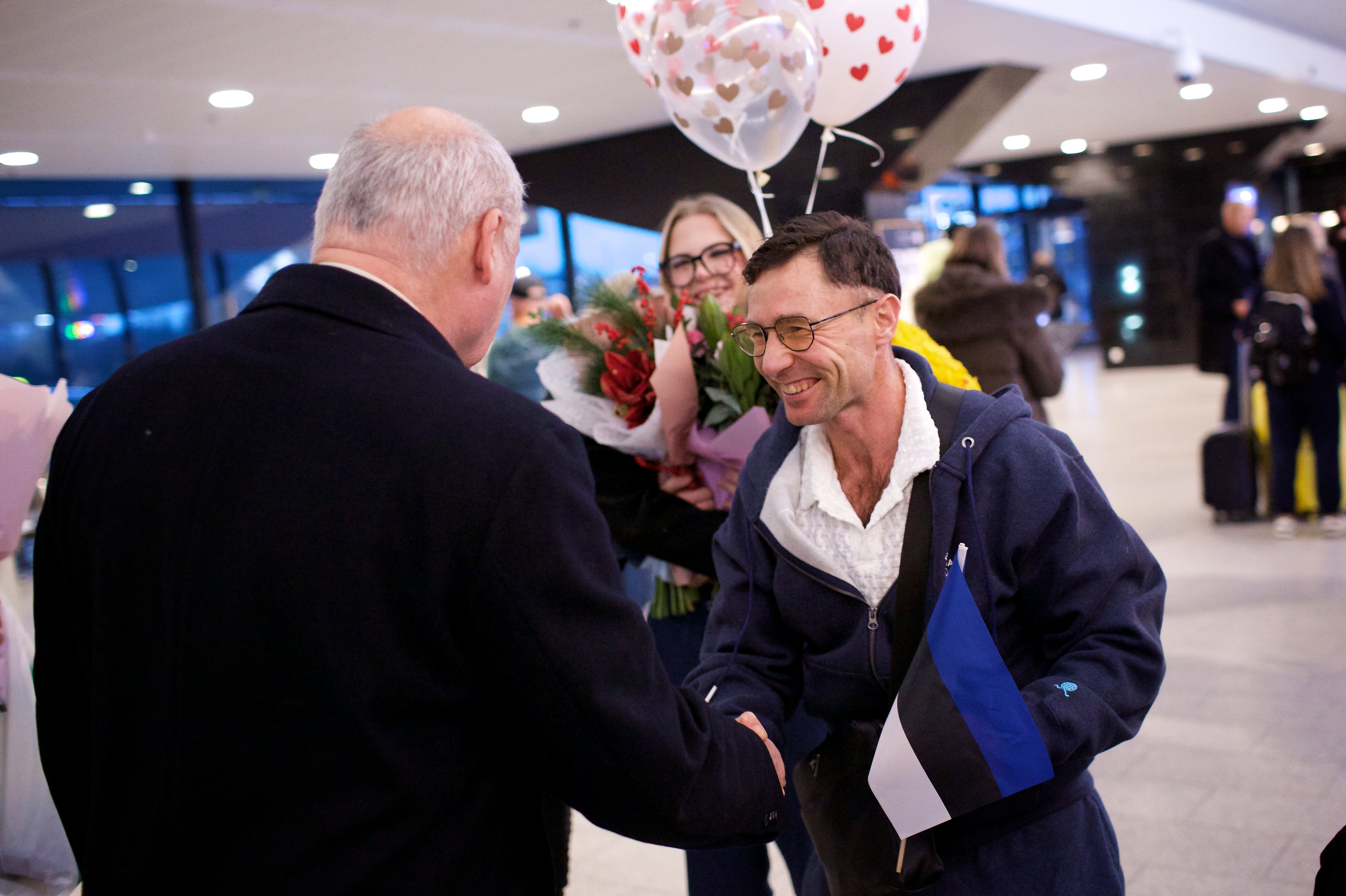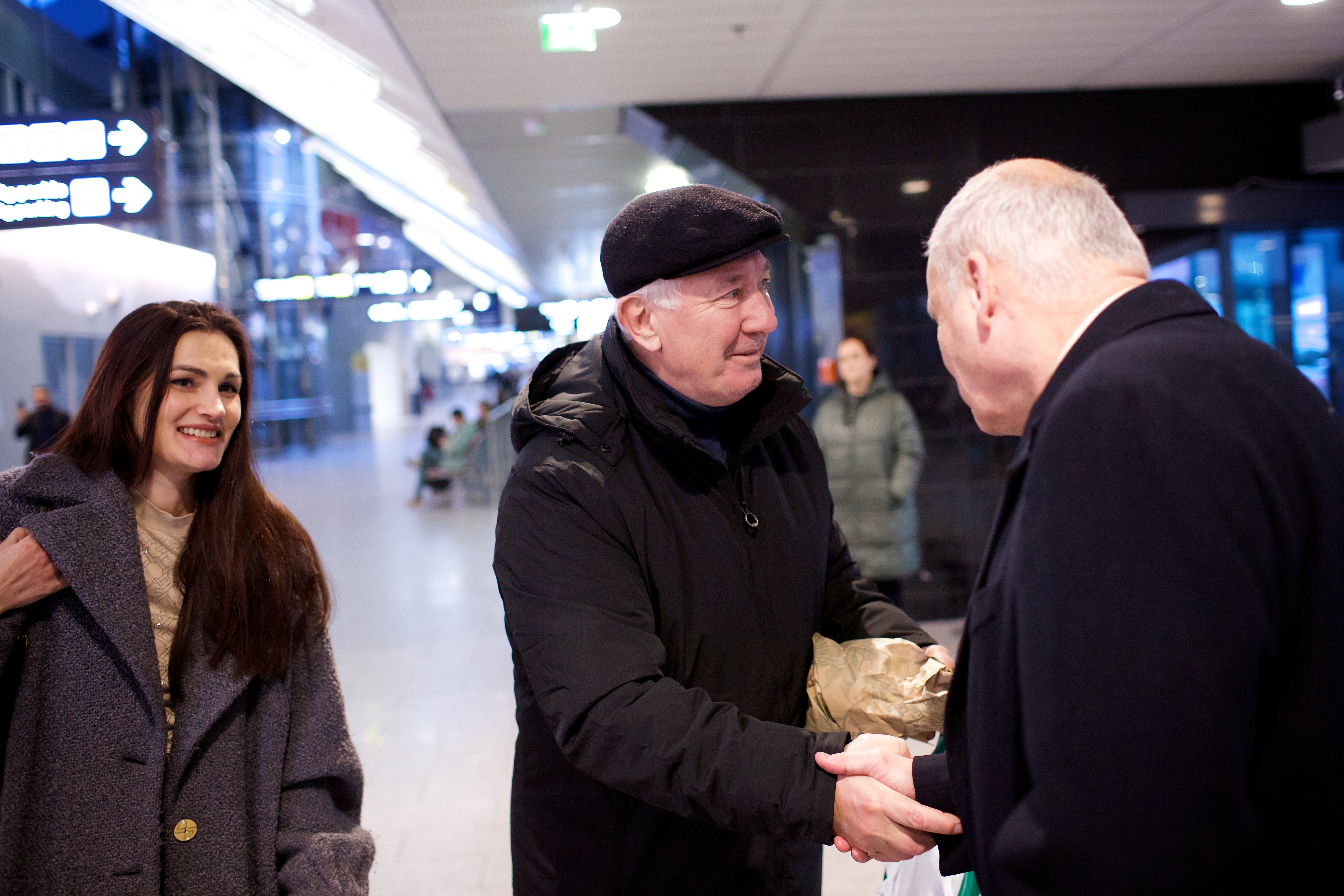 Pilte Melana Nelgi ja tema treeneri Jevgeni Golovatši vastuvõtust Lennart Meri lennujaamas.
