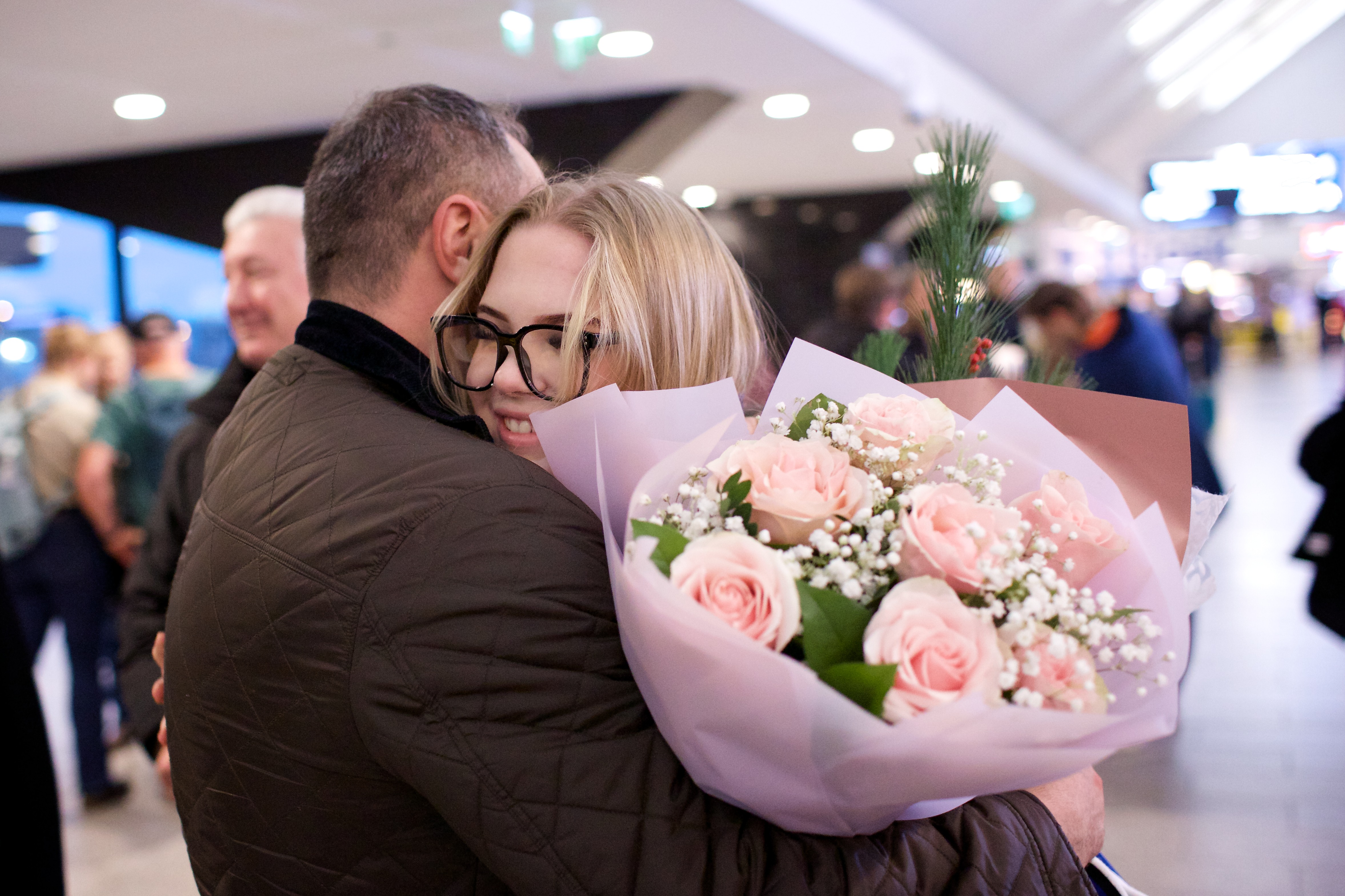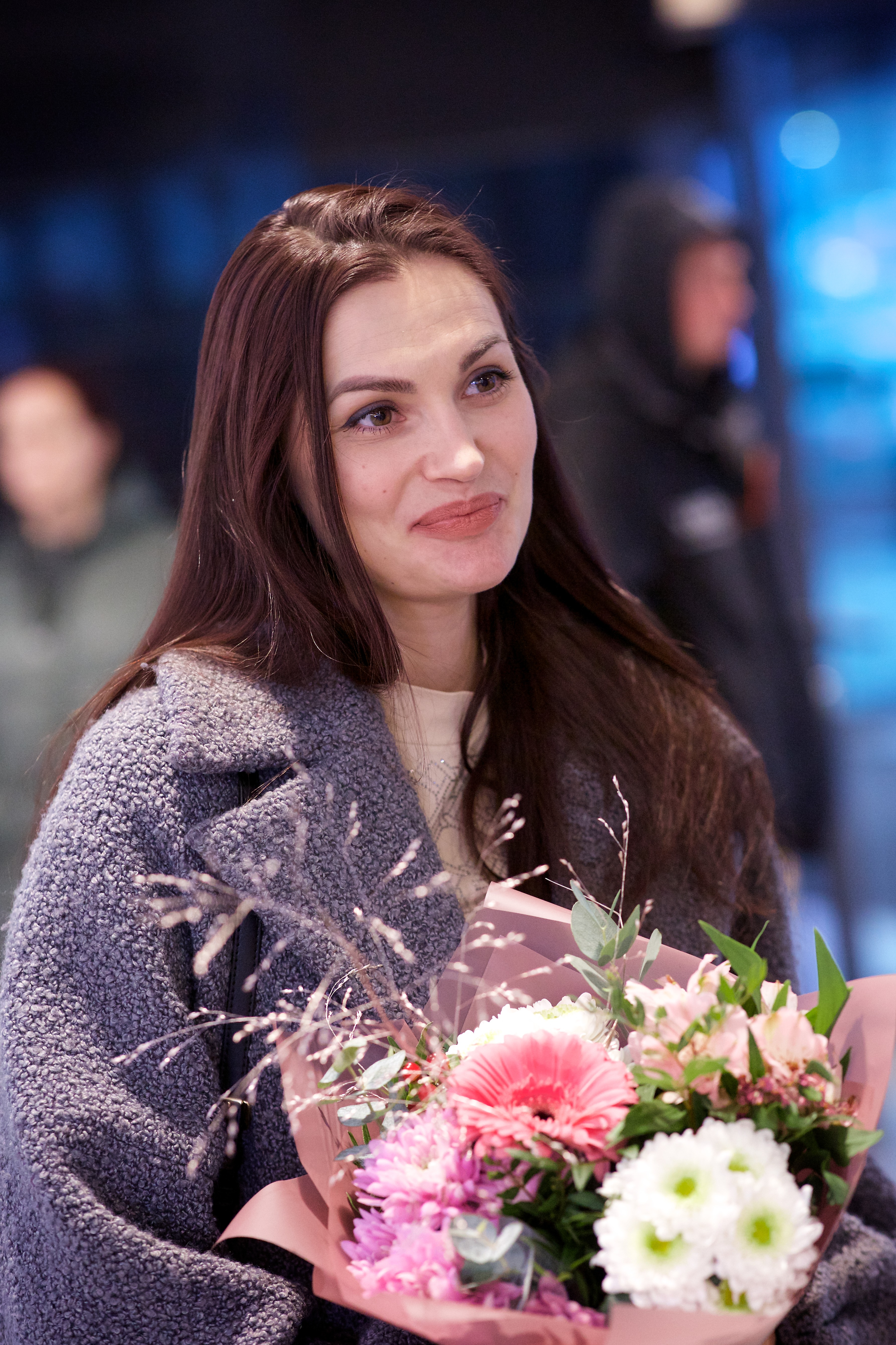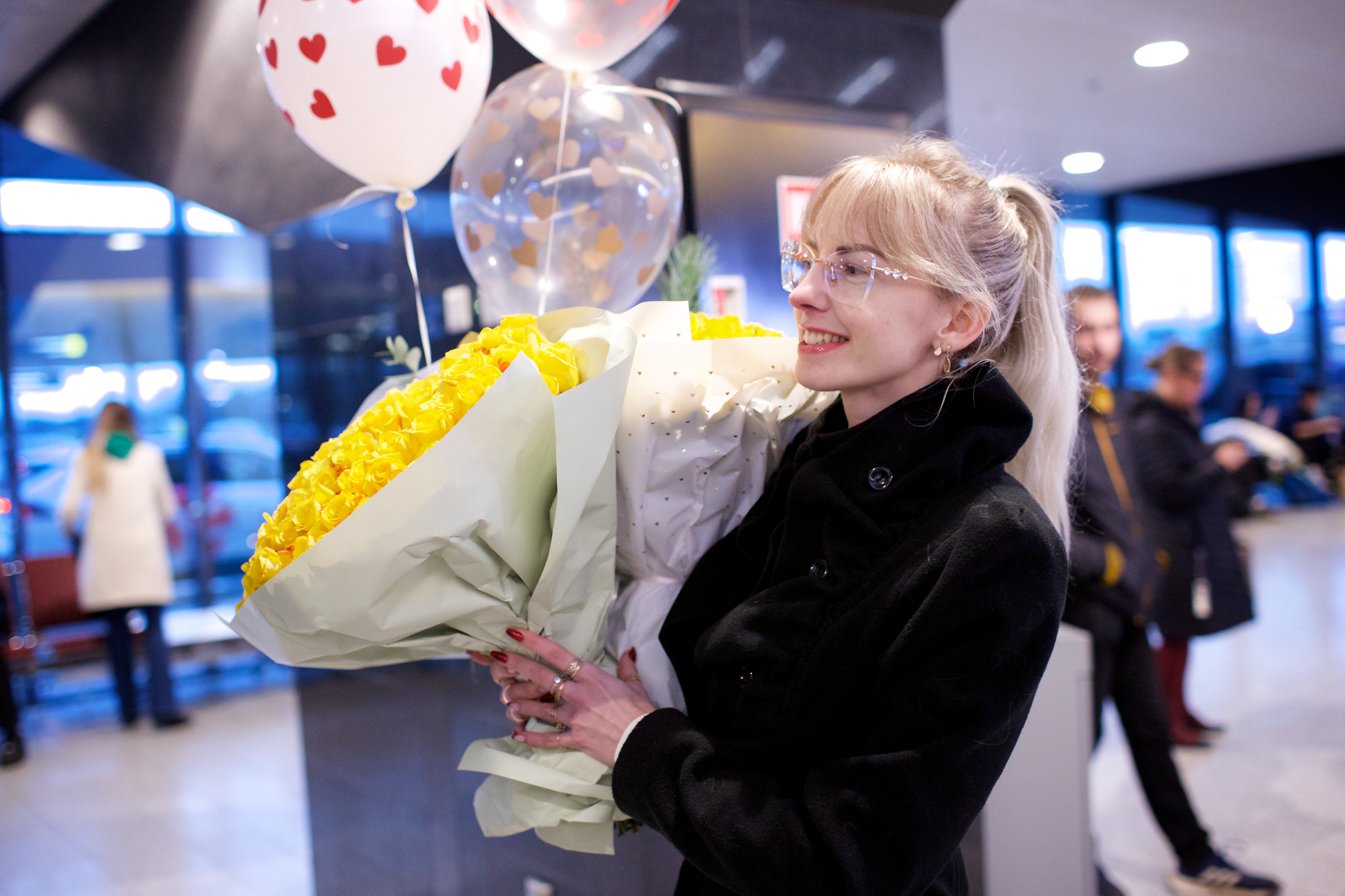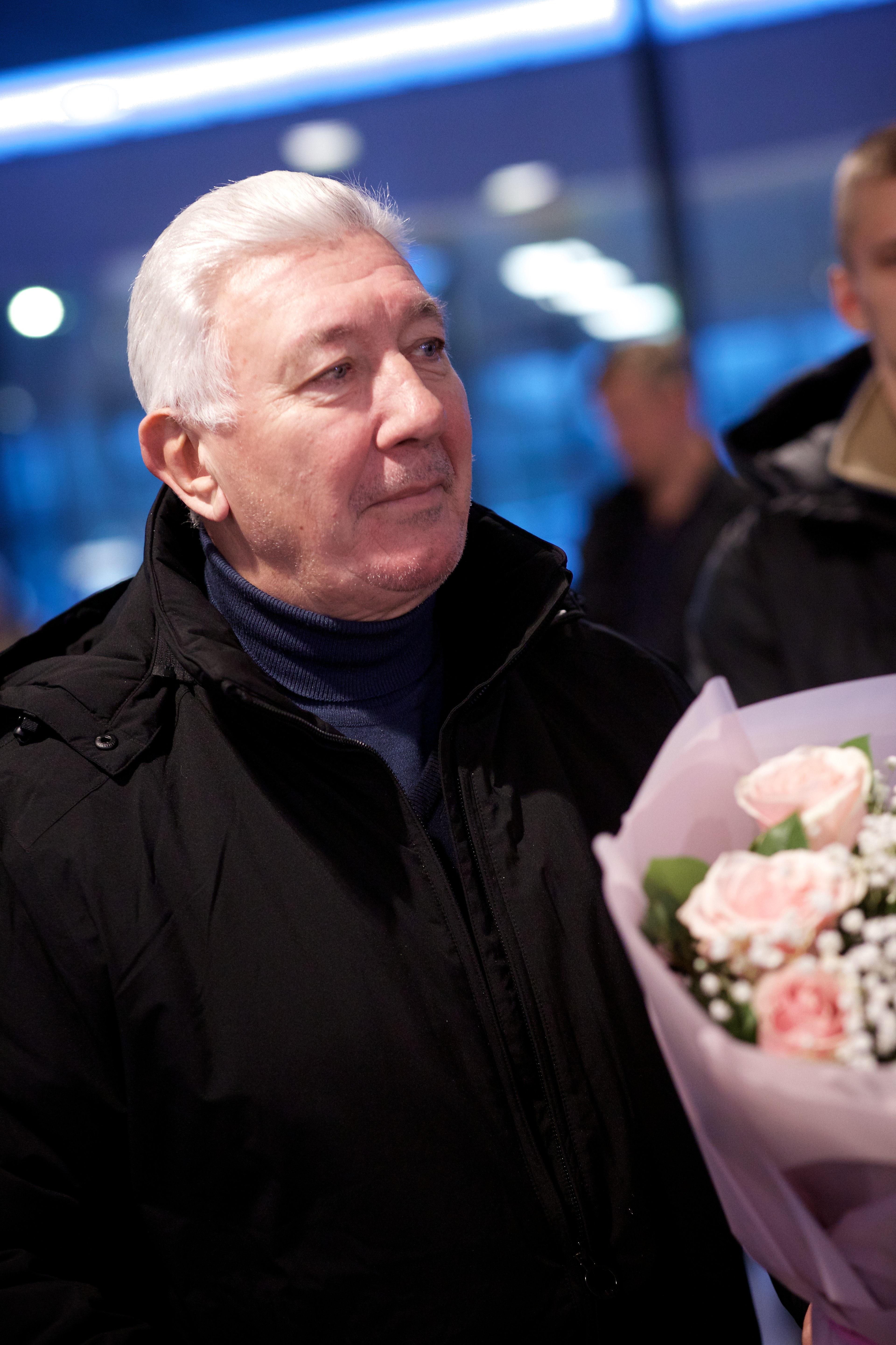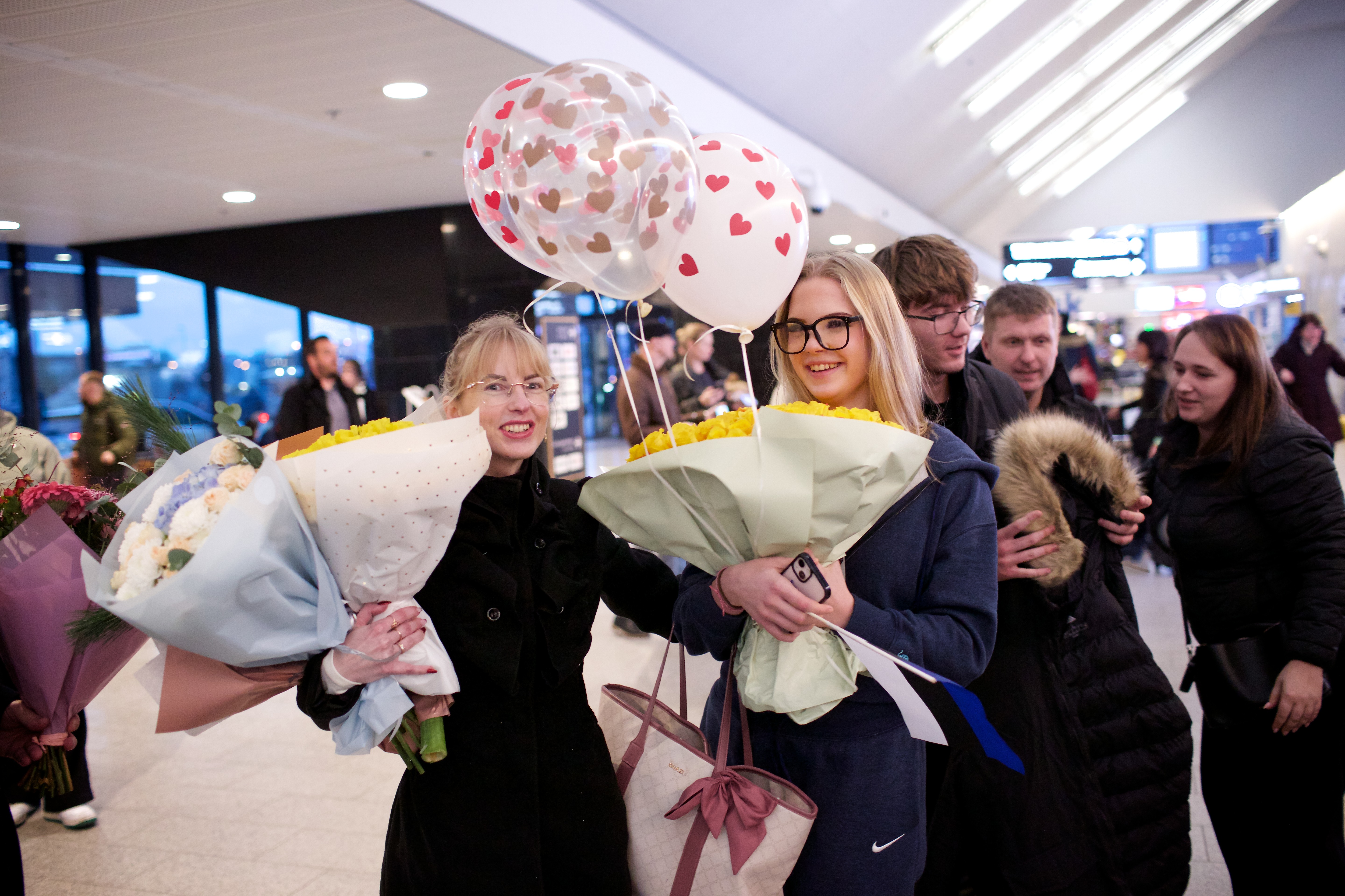 Pilte Melana Nelgi ja tema treeneri Jevgeni Golovatši vastuvõtust Lennart Meri lennujaamas.