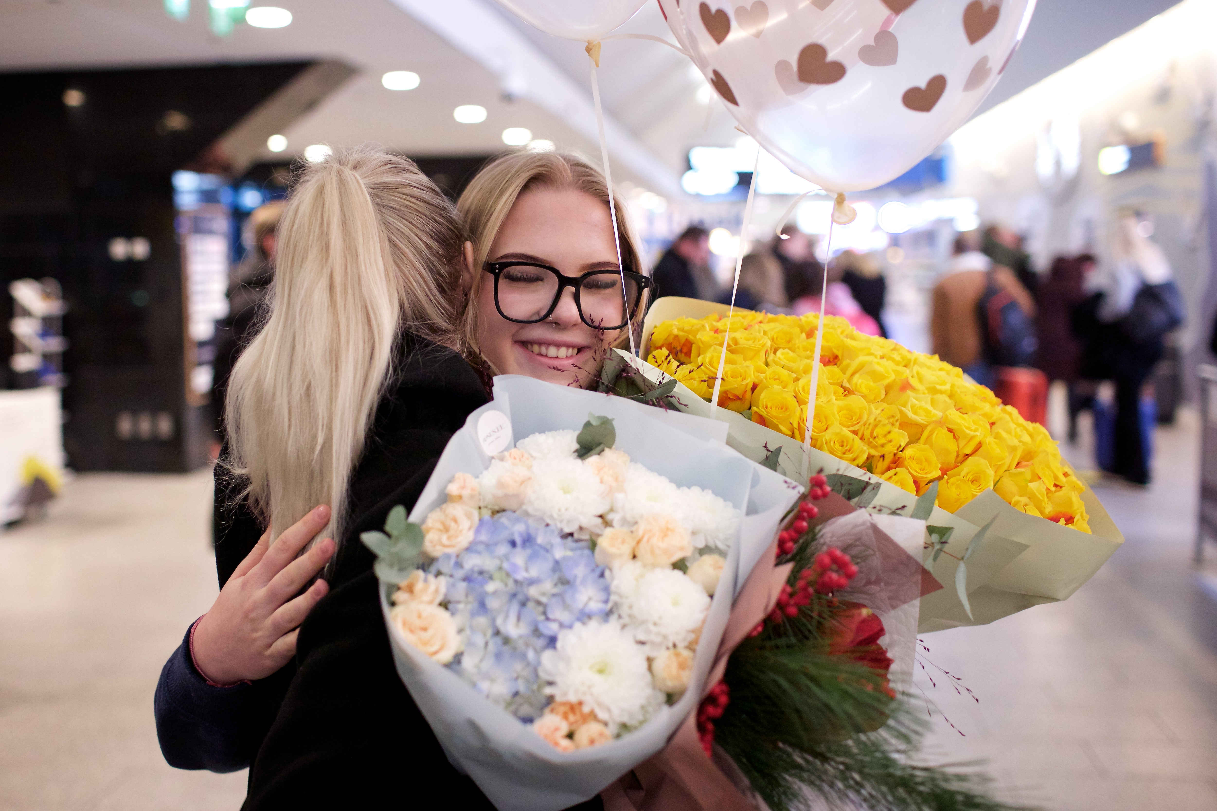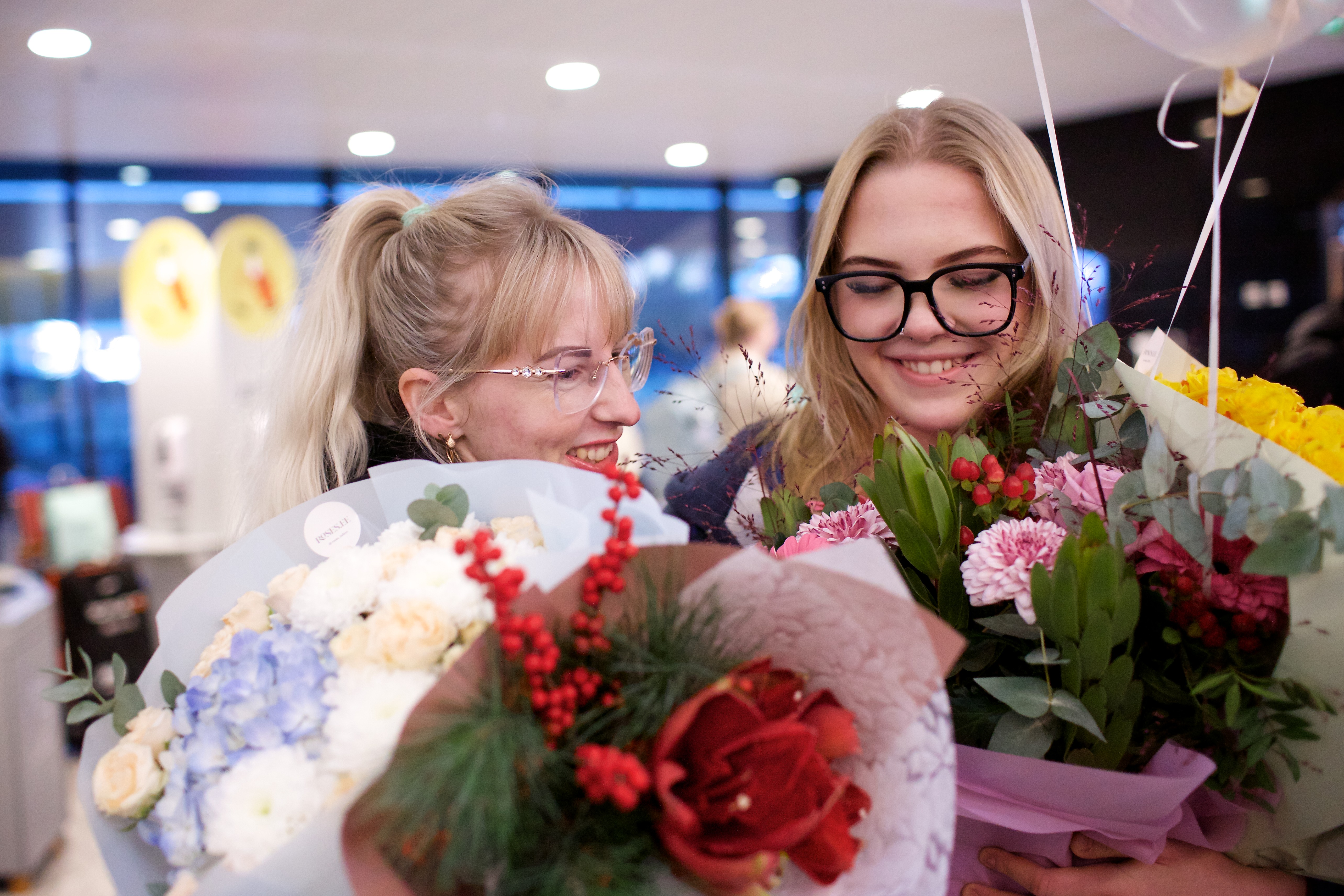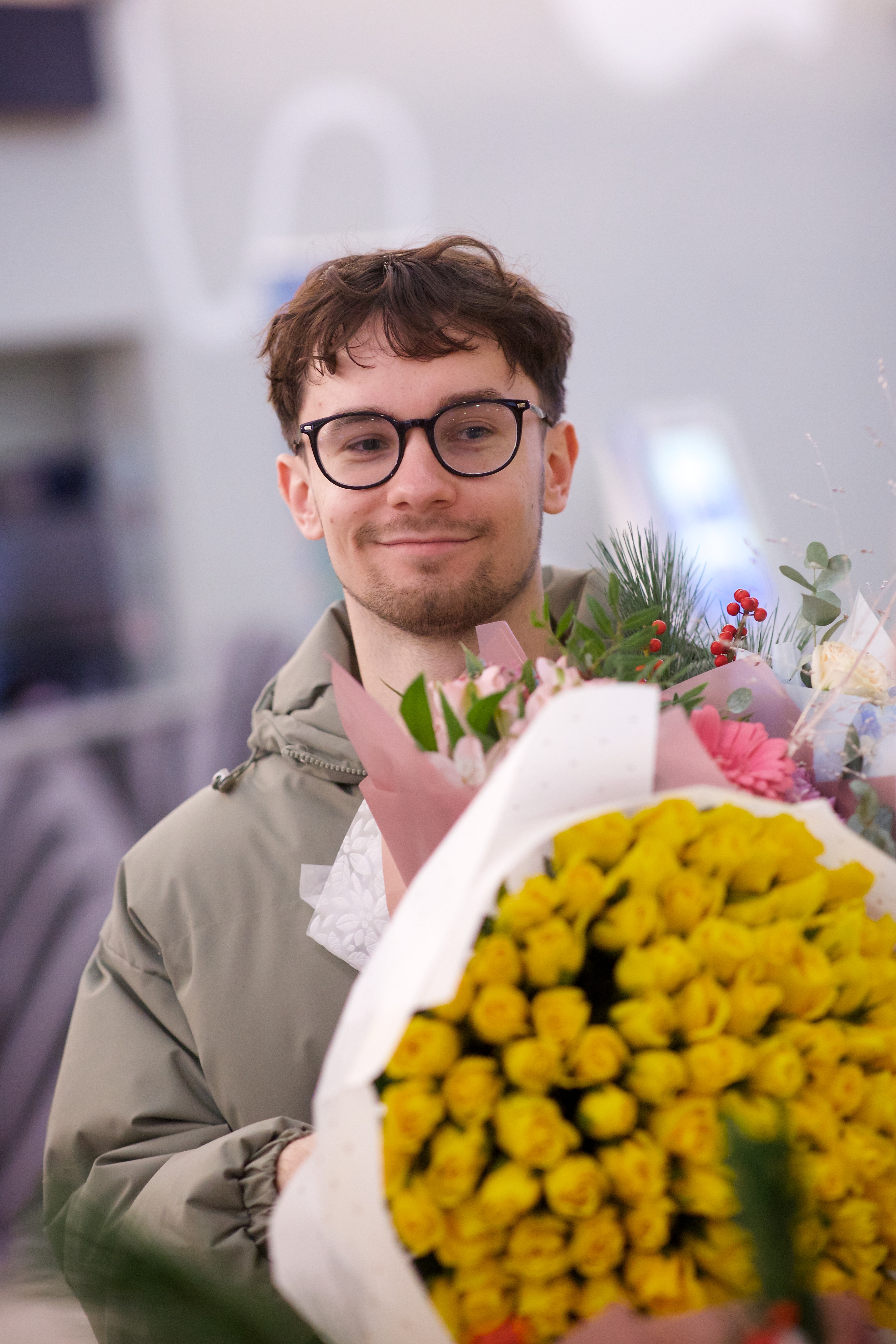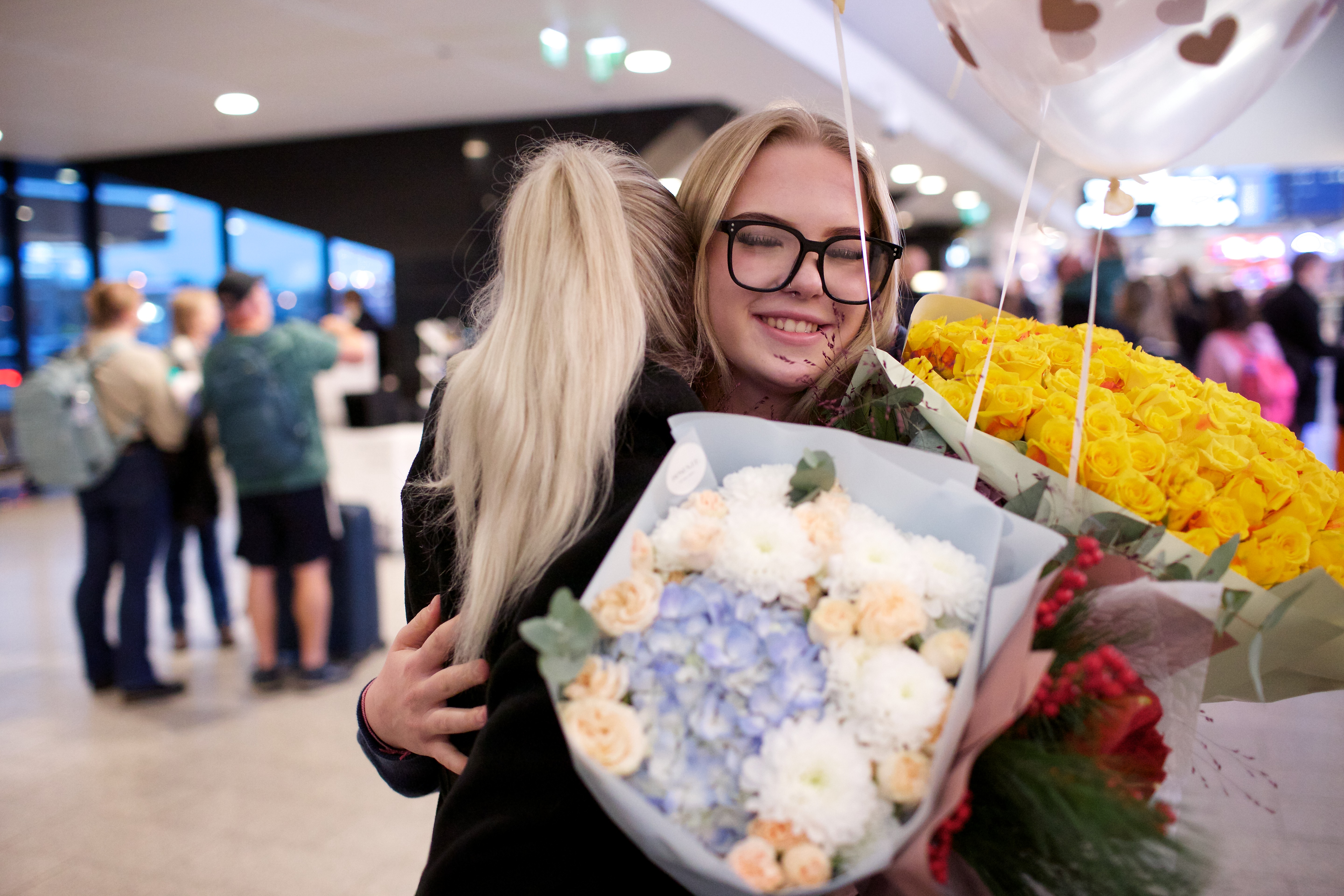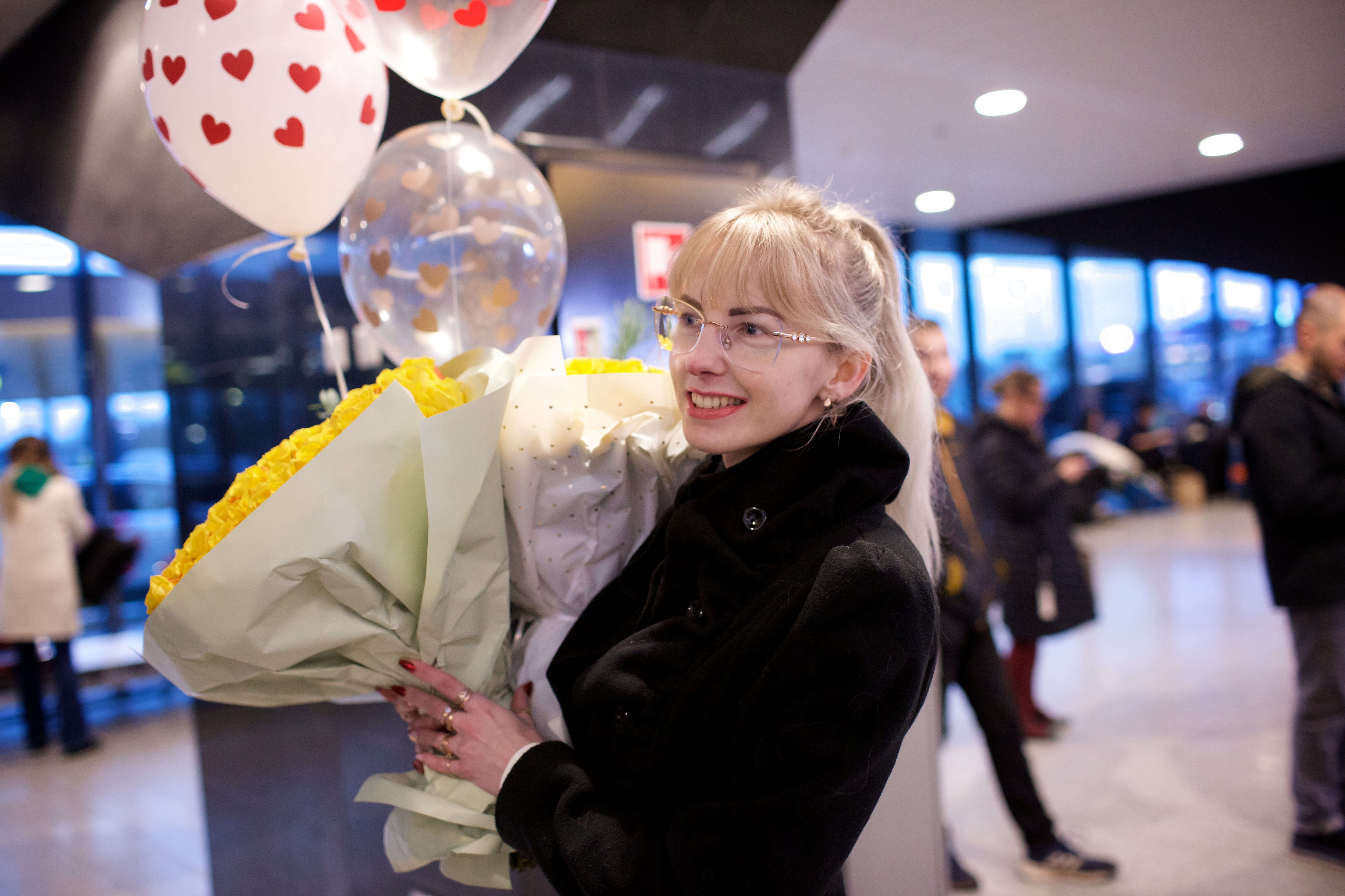 Pilte Melana Nelgi ja tema treeneri Jevgeni Golovatši vastuvõtust Lennart Meri lennujaamas.