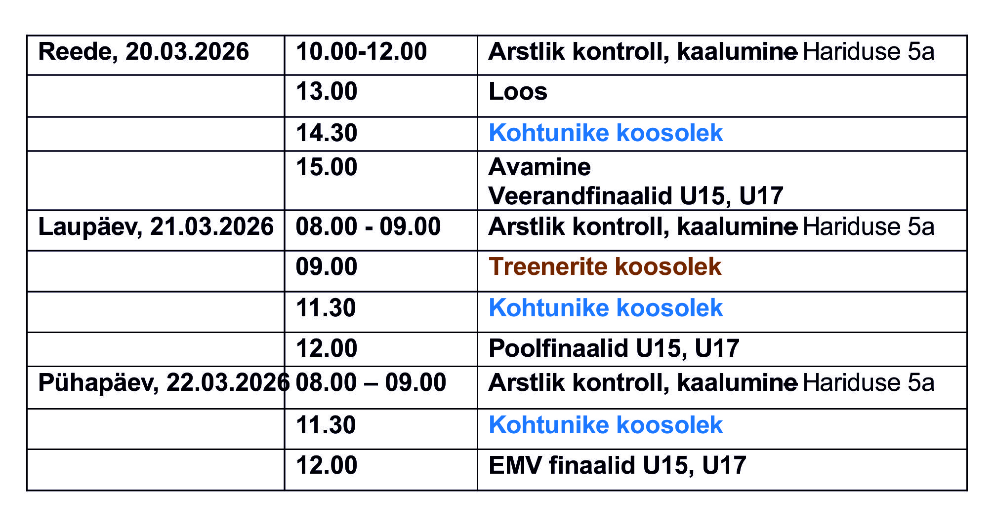 4.1. Võistlused toimuvad 20-22.03.2026, Jõhvi Spordihall, Hariduse 5a, Jõhvi.